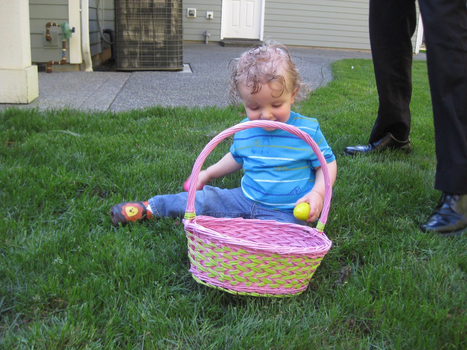 Mark loved what he found inside the Easter eggs. He thought I was going to take it away from him and he gave me that look...